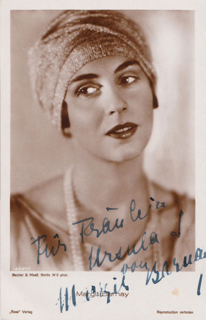 Die Enkelin des Theaterschauspielers Ludwig Barnay sowie Tochter eines Rechtsanwalts und einer Sängerin und Malerin schlug zunächst den Weg ihrer Mutter ein und ließ sich in Musik und Malerei ausbilden. Bei Kriegsende 1918 überredete der Filmregisseur Siegfried Dessauer sie zu einem Berufswechsel und holte Margit Barnay mit der weiblichen Hauptrolle in seiner Inszenierung „Kinder der Liebe“ erstmals vor die Kamera. Margit Barnay arbeitete schon frühzeitig mit führenden Regisseuren der Weimarer Republik zusammen, allen voran F. W. Murnau, der ihr Hauptrollen in „Satanas“ und „Der Knabe in Blau“ gab.