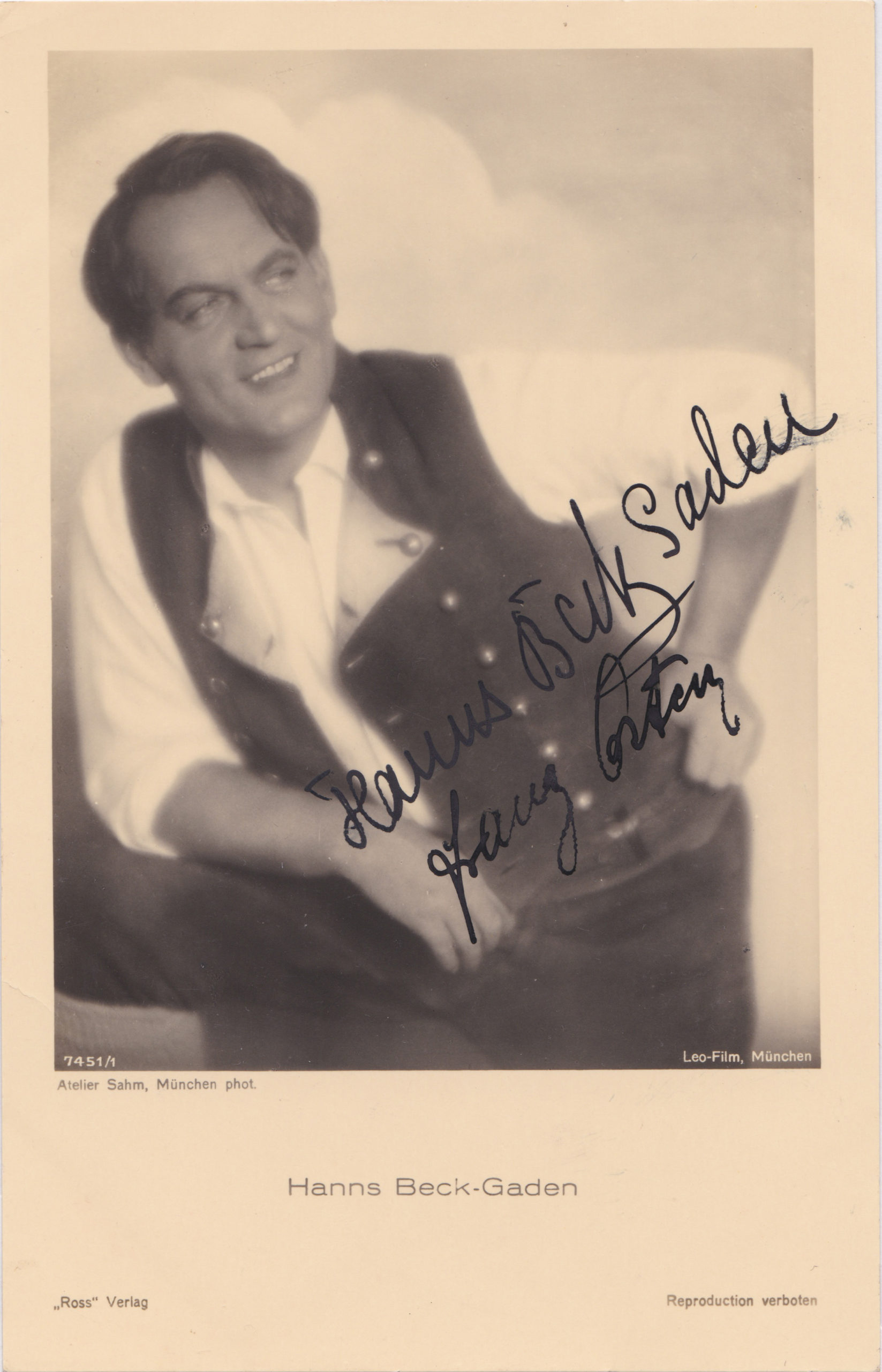 Bereits 1920 stand Hanns Beck – erst später nahm er den Namen Beck-Gaden an – erstmals vor der Kamera. Sein Metier waren vorwiegend ländlich-bäuerliche Dramen. Als Regisseur zeichnete Beck-Gaden in den letzten Jahren des Stummfilms (1927–1930) für eine Reihe von schlichten Bergdramen mit sich selbst und Gritta Ley in den Hauptrollen verantwortlich. Schließlich mochte man dem selbst von wohlwollenden (= rechtsradikalen) Kritikern umfassende Talentlosigkeit bescheinigten Beck-Gaden kaum mehr Regieaufträge überantworten. Daraufhin ging der Münchner zeitweilig nach Ägypten, um, wie er behauptete, den dortigen Filmmarkt für deutsche Filme zu erobern. Seine verbalen Ausfälle und Tiraden gegen das deutsche Filmschaffen vor 1933 – der Verschwörungstheoretiker Beck-Gaden sah sich stets als Opfer der ihn lächerlich machenden Kritik und links-jüdischer Kreise – brachten ihm bei der nationalsozialistischen Machtergreifung keine Bonuspunkte, zu sehr missbilligten selbst die braunen Machthaber das schwache Niveau seiner Filme.