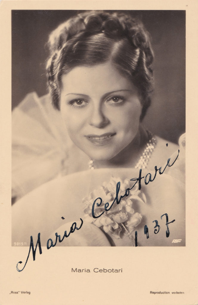 Maria Cebotari, eigentlich Maria Cebotaru (* 28. Januarjul./ 10. Februar 1910greg. in Chișinău, Bessarabien, Russisches Kaiserreich; † 9. Juni 1949 in Wien) war eine rumänische Opernsängerin (Sopran).