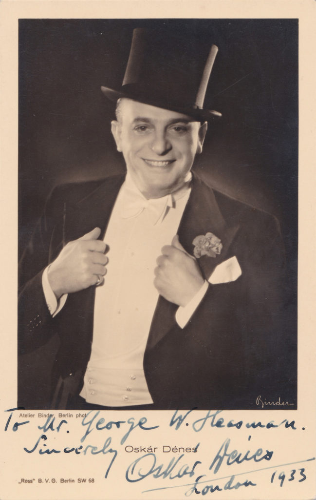Oskar Dénes spielte bereits 1919 in seinem ersten Spielfilm mit; „Tegnap“ unter der Regie von Lajos Lázár. In der Folgezeit machte er zunächst als Filmschauspieler, dann als Operettenbuffo und Bühnenschauspieler von sich reden. Seine größten Erfolge feierte er zusammen mit seiner Frau Rosy Barsony Anfang der 30er Jahre in Berlin. Der Operettenkomponist Paul Abraham hatte das Paar für seine Operette „Viktoria und ihr Husar“ aus Budapest an die Spree geholt. Die beiden wurden absolute Publikumslieblinge. In einer zeitgenössischen Kritik heißt es: Rosy Barsony sei „eine Operettensoubrette allerersten Ranges, wie es lange keine gegeben hat. Aber sie hat an Oskar Dénes … auch einen nicht alltäglichen Partner. Seine schlagfertige Lustigkeit, sein tänzerischer Elan, seine pointierte Vortragskunst (Spezialität Lachsongs) haben seit Giampietros Tagen ihresgleichen nicht mehr gehabt. In seiner Art, allerlei Unsinn herauszusprudeln, ist er ein Wallburg der Operette.“