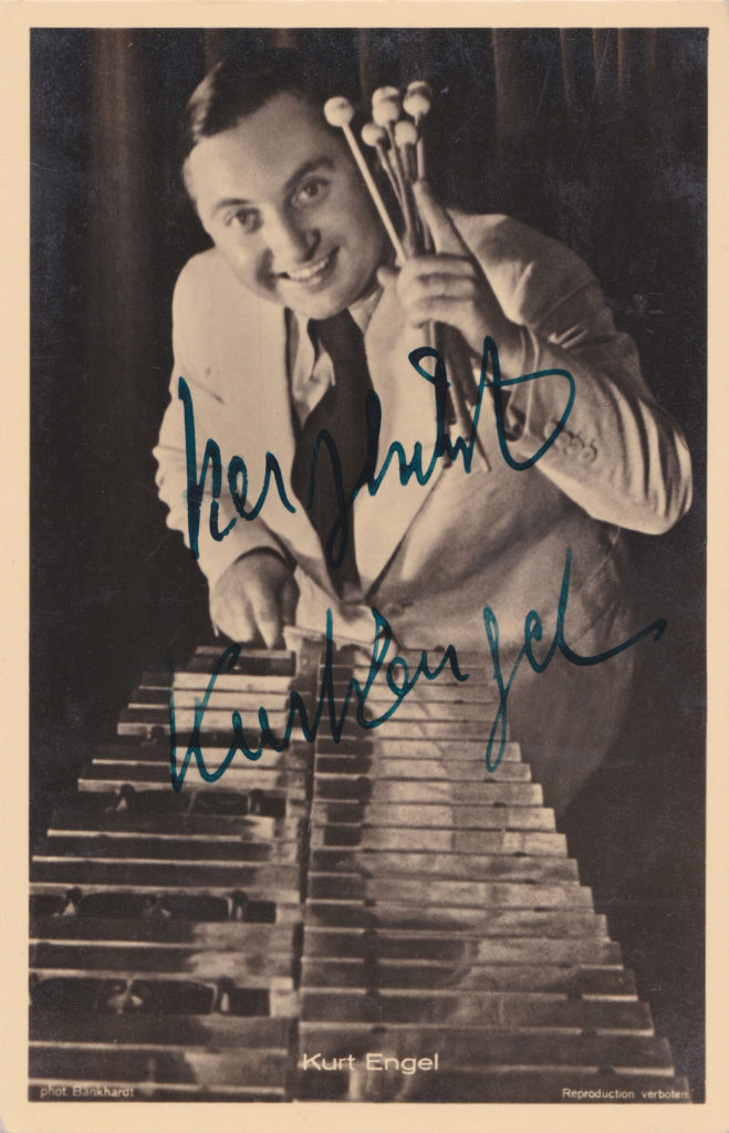 Engel spielte zahlreiche Schallplatten zwischen 1927 und den 1950er Jahren ein, darunter auch Swingtitel für die Label Kristall (San Francisco), Telefunken und Metrophon. Bei seinen ‚Tanzrhythmikern‘ wirkten Musiker wie Benny de Weille, Kurt Hohenberger, Franz Thon, Mike Danzi und Ernst Höllerhagen mit; ebenso arbeitete er mit Rudi Schuricke und den Orchestern von James Kok (Der lustige Vibraphonist), Erhard Bauschke, Hans Bund, Adalbert Lutter, Oscar Joost und Heinz Buschhagen zusammen. Zuletzt war Engel als Paukist im RIAS Tanzorchester tätig, mit dem er gleichfalls aufnahm.