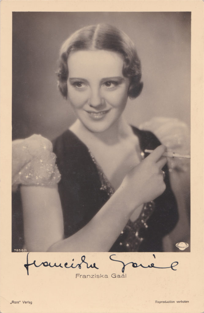 Ihr Freund und späterer Partner, der UFA-Produzent Joe Pasternak, brachte die temperamentvolle Schauspielerin 1932 nach Berlin zum Film. In Verwechslungskomödien wie „Paprika und Gruß“ und „Kuß – Veronika“ avancierte Franziska Gaal als Hauptdarstellerin und Partnerin von Paul Hörbiger auf Anhieb zum auch singenden Filmstar. So nahm sie mehrere Platten auf, unter anderem den Titel ihres Filmduettes mit Paul Hörbiger „Die kleinen Mädchen mit dem treuen Blick“.