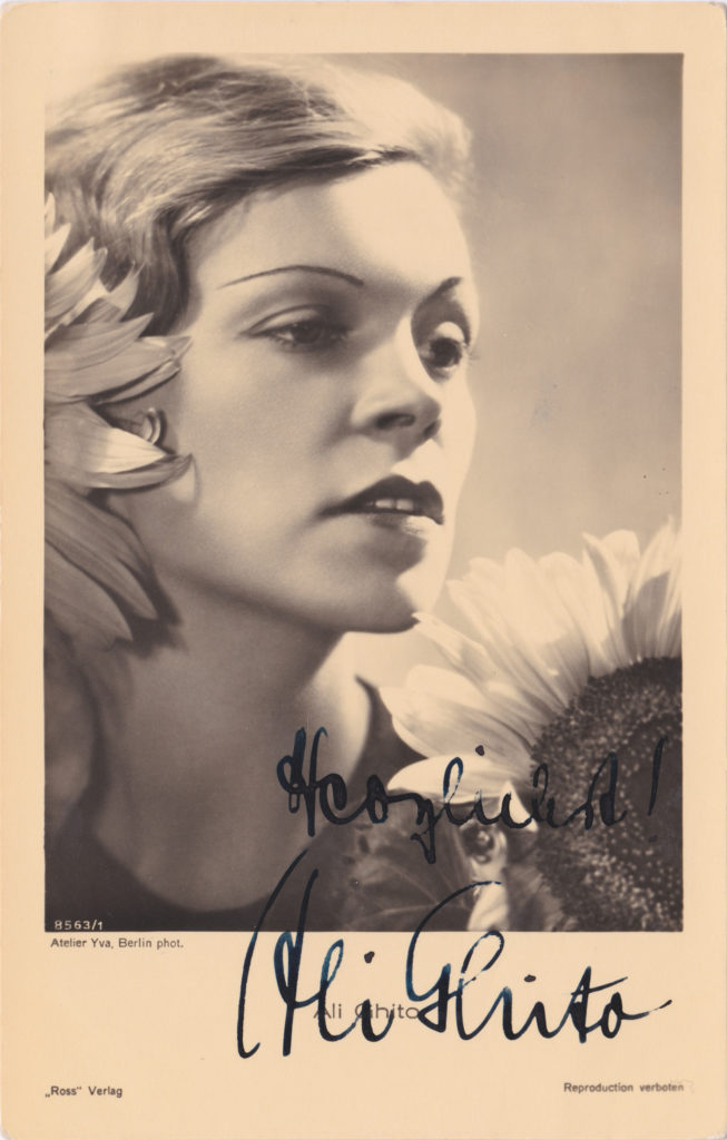 In der deutschen Hauptstadt startete die 26-jährige Künstlerin 1931 mit einem winzigen Auftritt in einem Reinhold-Schünzel-Film eine Karriere, die mit dem Zweiten Weltkrieg endete. Eine Hauptrolle war ihr erstmals in ihrem zweiten Film beschieden, dort spielte Ali Ghito eines der „Acht Mädels im Boot“. Von 1934 bis 1936 hielt sie sich im Ausland auf. Wegen mangelnder Filmangebote arbeitete Ali Ghito während des Zweiten Weltkriegs größtenteils als Krankenschwester sowie als Dolmetscherin beim Oberkommando der Wehrmacht.