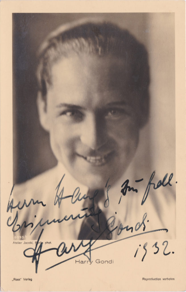 Der Schauspieler Harry Gondi war als Theaterschauspieler tätig, als er bereits 1921 mit dem Film Die Fremde aus der Elstergasse sein Filmdebüt gab. Doch es dauerte bis 1927, ehe er regelmäßig vor der Kamera agierte. In den 1930er Jahren folgten weitere sporadische Filmauftritte, doch seine Aufmerksamkeit galt nach wie vor dem Theater.