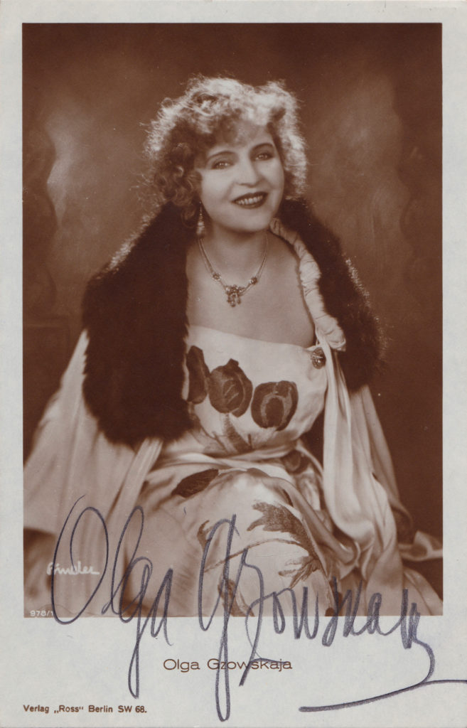 1914 gab Olga Gsovskaja Gastspiele im Westen Europas, währenddessen sie als mögliche russische Spionin während der Julikrise in Deutschland verhaftet und in Köln eingesperrt wurde. Erst auf Intervention des damaligen Theaterintendanten von Braunschweig, Freiherr von Wangenheim, kam sie wieder frei und konnte nach Russland heimreisen. 1916 gab Gsovskaja ihren Einstand vor der Kamera und wirkte mit tragenden Rollen in einer Reihe von Inszenierungen Jakow Protasanow mit. Zu dieser Zeit lernte sie den Schauspielkollegen Wladimir Gaidarow kennen, der sowohl ihr Filmpartner als auch 1920 ihr Ehemann wurde.
