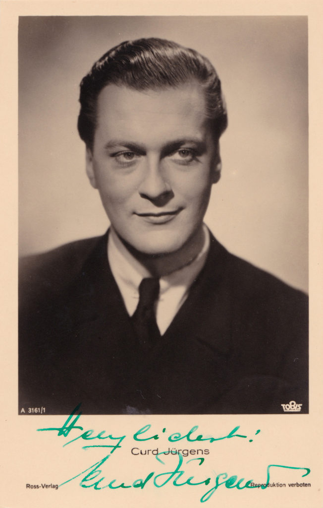 Willi Forst erkannte, dass sich das junge Schauspieltalent für den Film eignen könnte. Curd Jürgens spielte über vier Jahrzehnte hinweg in rund 160 Filmen mit. Als Filmschauspieler zählte er ab den späten 1950er Jahren zu den wenigen deutschsprachigen Stars mit weltweitem Ruhm und wirkte bis zu seinem Tod in zahlreichen internationalen Produktionen mit.