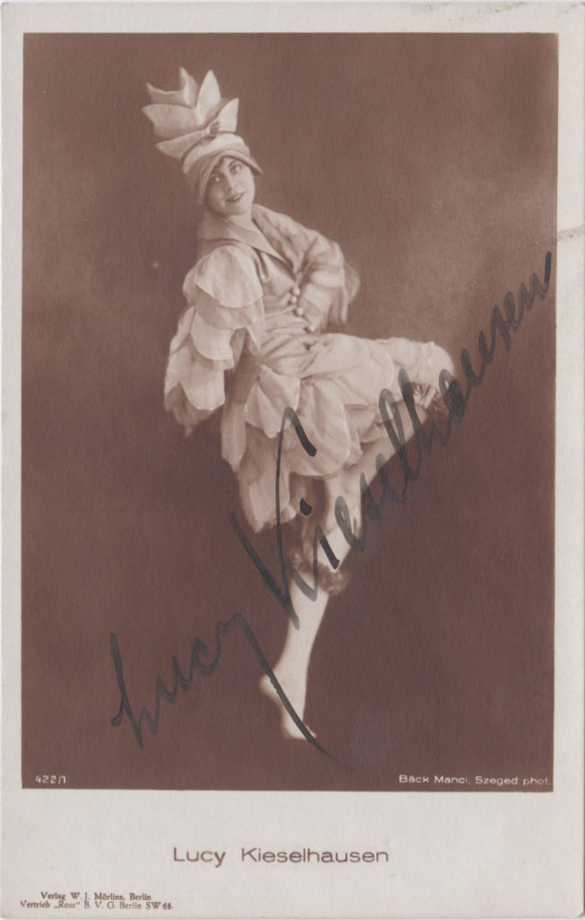 Die Tänzerin und Schauspielerin Lucy Kieselhausen war Schülerin von Grete Wiesenthal und war anfangs des 20. Jahrhunderts eine gefeierte Tänzerin, die viele Erfolge auf den deutschen Bühnen feiern konnte.