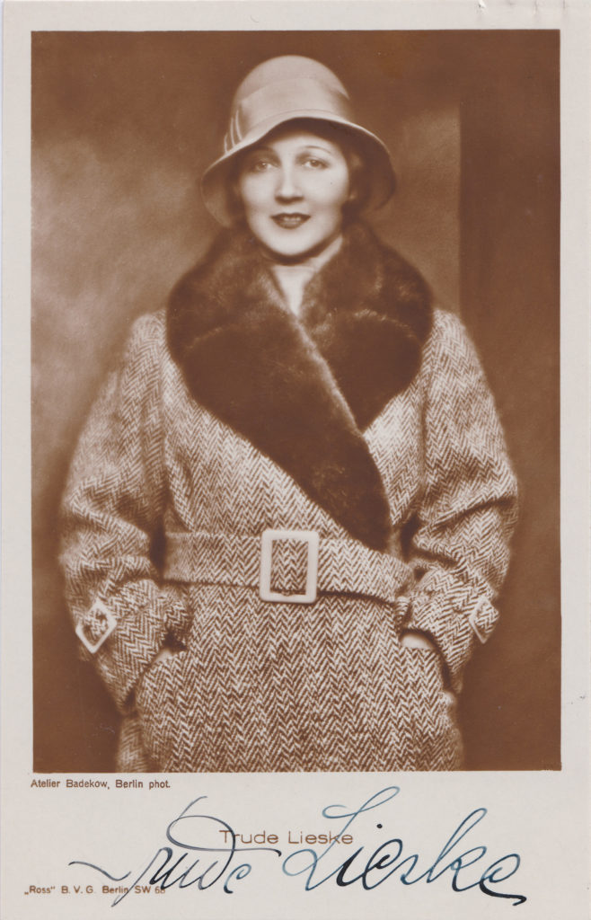 Ab 1928 spielte Trude Lieske in einigen Stummfilmen und ab 1930 in den ersten Tonfilmen, wo sie auch sang.