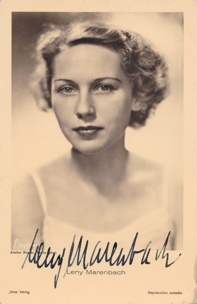 Leny Marenbach wurde auch für das Kinopublikum zum Begriff, als sie in drei Filmen an der Seite von Heinz Rühmann spielte. Die Zwanzig- bzw. Einundzwanzigjährige ist in „Wenn wir alle Engel wären“ und „Der Mustergatte“ seine Ehefrau, in Fünf Millionen suchen einen Erben wird sie es. Das Paar hatte auch ein privates Verhältnis. 1940 spielte sie an der Seite von Hans Söhnker in Helmut Käutners Komödie „Frau nach Maß“. Später übernahm sie Rollen in recht unterschiedlichen Filmen, die sie u. a. als Krankenschwester in „Irrtum des Herzens“ oder als allein erziehende Mutter in „Wie sagen wir es unseren Kindern“ zeigten.