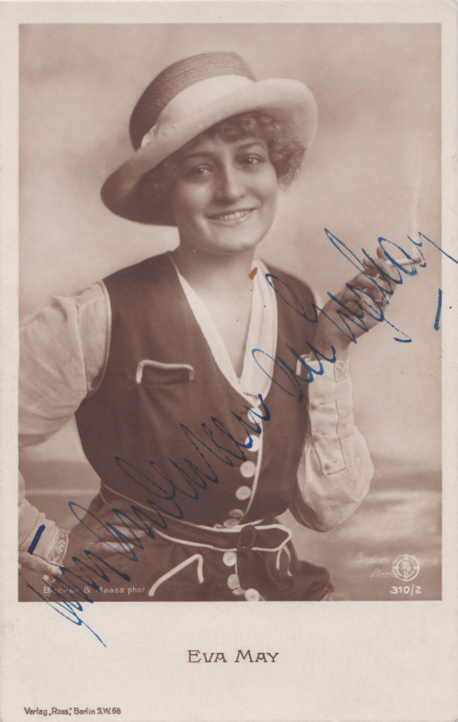 Die hochtalentierte, aber launenhafte Eva May überwarf sich mehrmals mit ihren Eltern. Sie war die Verlobte von Rudolf Sieber, bis dieser seine spätere Frau Marlene Dietrich kennenlernte. Daraufhin versuchte Eva May sich im Jahr 1923 das Leben zu nehmen, indem sie sich die Pulsadern öffnete.