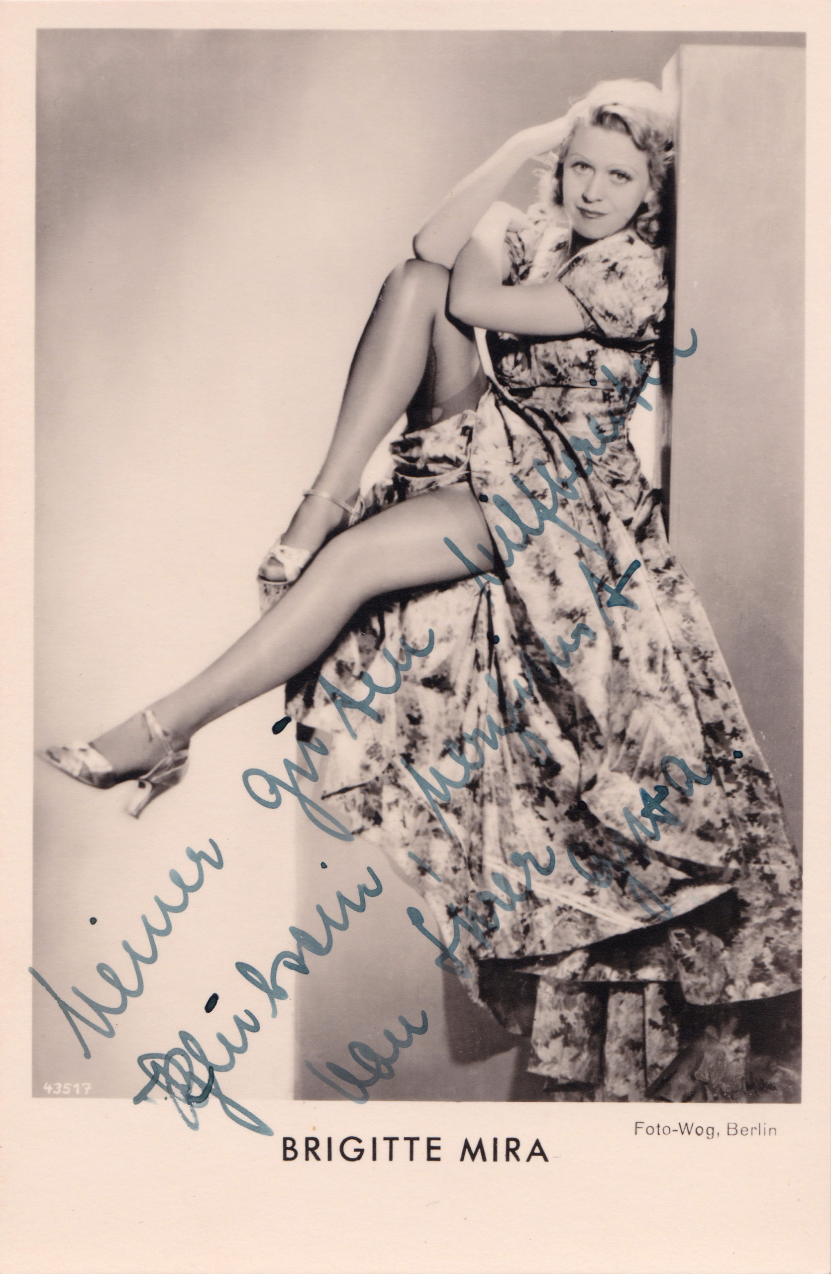Brigitte Mira (* 20. April 1910 in Hamburg; † 8. März 2005 in Berlin) war eine deutsche Volksschauspielerin, Kabarettistin und Chanson-Sängerin. Sie war bekannt als Berliner Original aus Fernsehserien wie „Drei Damen vom Grill“ sowie durch die Hauptrolle in Fassbinders Melodram „Angst essen Seele auf“, für die sie 1974 den Deutschen Filmpreis als beste weibliche Hauptdarstellerin erhielt.