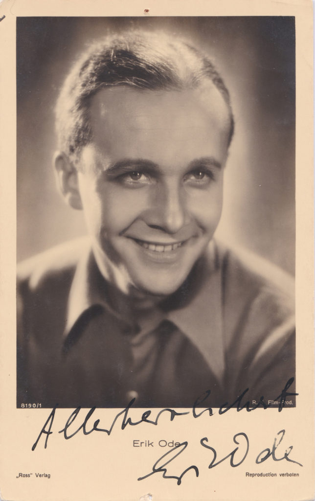 Bereits als Zwölfjähriger spielte Erik Ode 1923 in dem Stummfilm „I. N. R. I.“ mit. Er besuchte vorübergehend die Freie Schulgemeinde Wickersdorf und begann nach der mittleren Reife 1927 eine Lehre in einer photochemischen Anstalt.