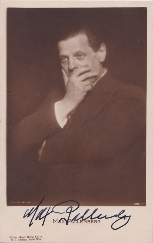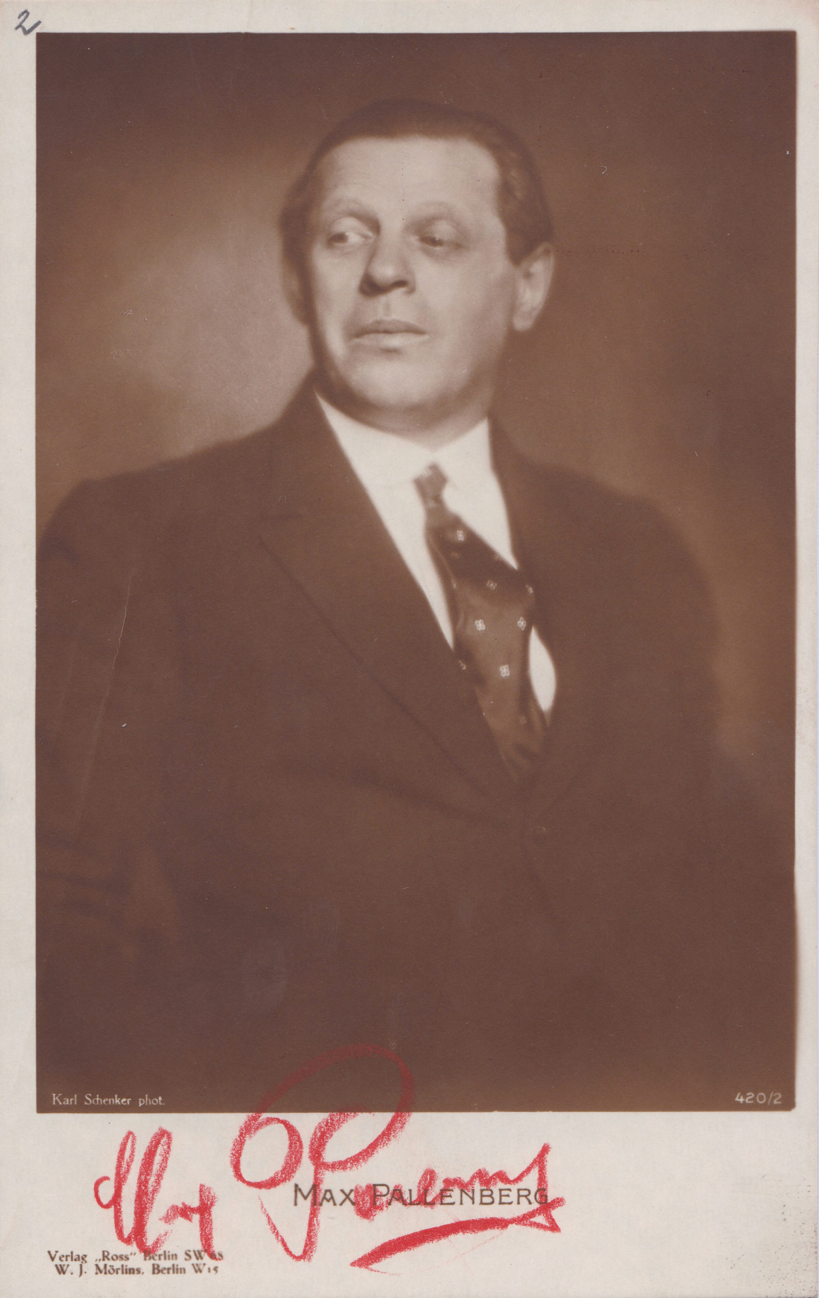 Max Pallenberg wurde am 18. Dezember 1877 in Wien II. Leopoldstadt, Wintergasse (seit 1956 Hartlgasse) 7 als Sohn des aus Galizien nach Wien eingewanderten Brandweiners Markus Pallenberg und seiner Frau Kressel (auch Therese) geb. Korsower geboren. Nach einer Ausbildung zum Schauspieler trat Pallenberg bei einer Wanderbühne und an Provinztheatern auf, bevor ihn Josef Jarno 1904 an das Theater in der Josefstadt in Wien engagierte. 1908 ging er als Operettenkomiker an das Theater an der Wien, sang unter anderem in der Uraufführung von Franz Lehárs Operette „Der Graf von Luxemburg“ und spielte 1910/11 am Deutschen Volkstheater in Wien. Seit 1911 spielte Pallenberg in München , 1914 wurde er von Max Reinhardt an das Deutsche Theater nach Berlin verpflichtet, wo er seinen künstlerischen Durchbruch erzielte und mit Glanzrollen wie dem Schluck in Gerhart Hauptmanns „Schluck und Jau“ und dem Peachum in der „Dreigroschenoper“ bald einer der bekanntesten Charakterkomiker seiner Zeit wurde.