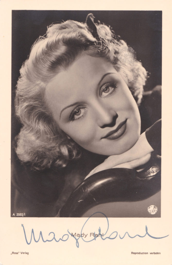 Doch erst durch die Produktion „Truxa“ (Regie: Hans H. Zerlett) von 1937 wurde sie als UFA-Star auch einem größeren Publikum bekannt. Z“weimal zwei im Himmelbett“, „Zu neuen Ufern“, „Eine Nacht im Mai“ und „Hallo Janine“ (als Partnerin von Marika Rökk und Johannes Heesters) folgten. Insgesamt wirkte Mady Rahl in mehr als 90 Filmen mit, davon etwa 30 zur Zeit der NS-Diktatur.