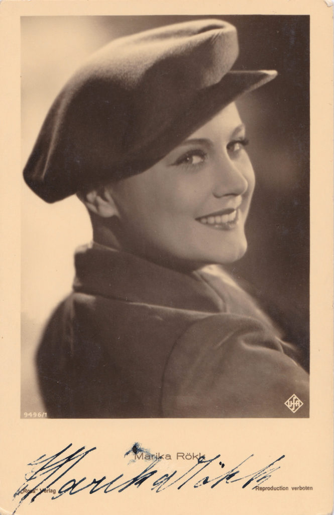 Marika Rökk arrangierte sich offen mit den nationalsozialistischen Machthabern. Sie duzte den Reichsfilmintendanten und SS-Führer Hans Hinkel und bewunderte Adolf Hitler, wie aus einem Brief an den Diktator hervorgeht: