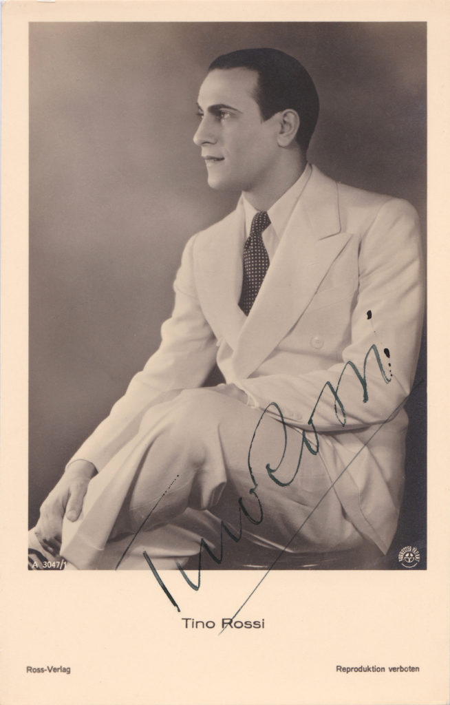 Tino Rossi wurde 1907 als Sohn eines Schneiders auf Korsika geboren. Schon früh bekam er von seinen Eltern eine Gitarre geschenkt, er komponierte einige Lieder und spielte in verschiedenen Lokalen in Ajaccio, um etwas Geld zu verdienen. Später entschloss er sich, nach Marseille zu gehen, wo er in Restaurants arbeitete, zwischenzeitlich verfolgte er die Szene des Cabaret an der Côte d’Azur und machte sich somit einem breiteren Publikum bekannt. In den 1930er-Jahren ging er nach Paris, dort machte er sich endgültig einen Namen, der ihm erlaubte, für die Columbia mit großen Künstlern wie Lucienne Boyer, Damia, Pills et Tabet, Mireille, Jean Sablon und der exzentrischen Milliardärin La Môme Moineau zu arbeiten.