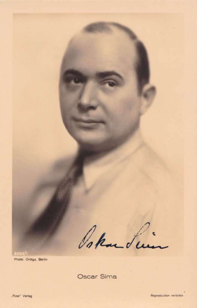 Oskar Sima wirkte in über 300 Filmen mit, wo er vorwiegend als Nebendarsteller eingesetzt wurde. Ein Kritiker nannte ihn deshalb einmal den König der Nebenrollen. Er wirkte in fast allen Sparten, vorwiegend in Operettenverfilmungen und Komödien, teilweise aber auch in ernsten Filmen und Melodramen. Meist war er der zwielichtige Typ mit Zigarre und Doppelmoral. Ende 1967/Anfang 1968 zog er sich auf seinen Besitz nahe Wien zurück. Kurz vor seinem Tod erhielt er 1969 das Filmband in Gold für langjähriges und hervorragendes Wirken im deutschen Film.