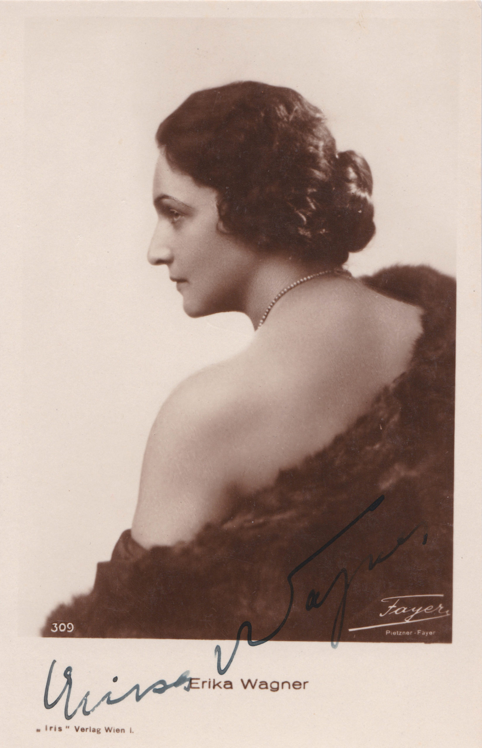 Erika Stiedry-Wagner wurde am 23. März 1890 in Zabeln in der russischen Provinz Kurland (heute: Lettland) geboren. Über ihre Eltern Paul von Wagner und Martha von Wagner, geb. Lieven, und über ihre Kindheit ist nichts bekannt. Sie absolvierte eine Ausbildung als Schauspielerin und wurde bereits 1907 an das Hoftheater in Meiningen engagiert. 1910/1911 spielte sie am Burgtheater in Wien und in der folgenden Saison am Neuen Schauspielhaus in Berlin unter Max Reinhardt. 1912 ging sie zurück nach Wien, diesmal ans Deutsche Volkstheater, wo sie mit einer Unterbrechung bis 1924 blieb und wohin sie 1926-1930 zurückkehrte. Dazwischen war sie am Theater in der Josefstadt bzw. wieder am Burgtheater engagiert (TrappF u. a. 2005, Teil 2, Bd. 2, S. 976-977). Dazu gab sie am 6. Dez. 1919 im Akademietheater in der Wiener Premiere die Fiore in Thomas Manns „Fiorenza“ und lernte bei dieser Gelegenheit den Schriftsteller kennen (MannT 1977-1995, Bd. 1918-1921, S. 332-336). Sie trat jedoch nicht nur im Schauspiel, sondern auch vor der Kamera auf: 1922-1935 wirkte sie in mindestens vier Filmen mit; einer von ihnen war 1932 die Verfilmung von Franz Lehárs Operette „Friederike“; da sie eine gute Stimme hatte und musikalisch war, hatte sie Gesangsunterricht genommen und war bereits seit 1920 gelegentlich auch als Lied- und Operettensängerin aufgetreten.