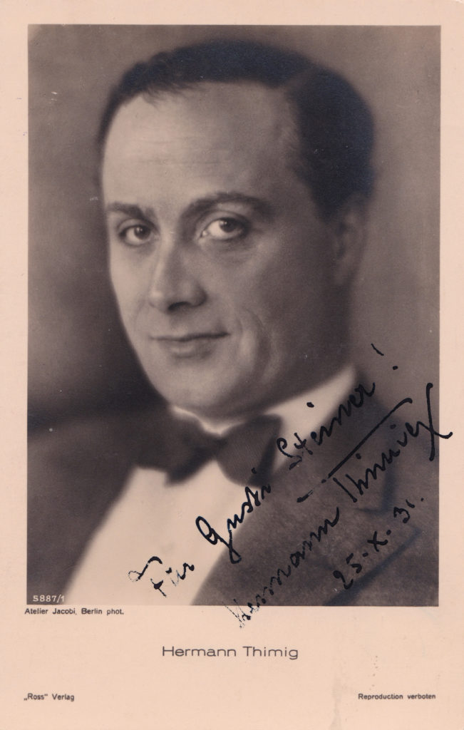 Hermann Thimig (* 3. Oktober 1890 in Wien; † 7. Juli 1982 ebenda) war ein österreichischer Theater- und Filmschauspieler und Regisseur.