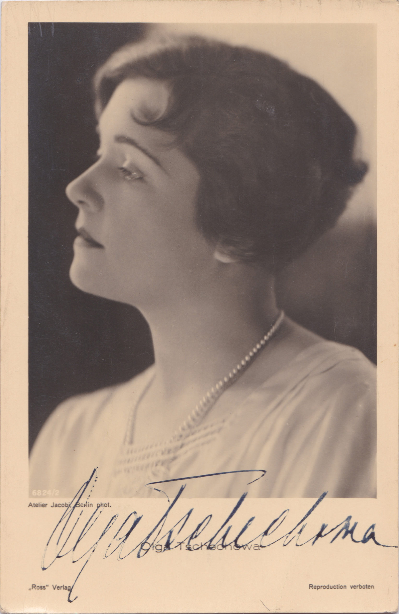 Olga Tschechowa, die schon 1917/18 in Russland erste Filmerfahrungen gemacht hatte, emigrierte 1921 nach Deutschland, schlug sich zunächst in Berlin als Plakatmalerin durch und wurde im gleichen Jahr von Friedrich Wilhelm Murnau für den Film „Schloß Vogelöd“ entdeckt. Zwei Jahre später folgte ihre erste Hauptrolle in Ibsens „Nora“. Ihr Bühnendebüt gab sie 1925 am Berliner Renaissance-Theater. Unter der Regie von René Clair spielte sie 1927 in der französischen Komödienverfilmung „Der Florentiner Hut“. In England trat sie in Ewald André Duponts „Moulin Rouge“ (1928) auf. 1928/29 war sie Co-Produzentin von fünf Filmen, beim letzten – „Der Narr seiner Liebe“ mit Michael Tschechow in der Hauptrolle – führte sie auch Regie. Neben Lilian Harvey wirkte Olga Tschechowa 1930 in einem der ersten deutschen Tonfilme, am Lustspiel „Die Drei von der Tankstelle“ in einer Nebenrolle mit. Zu ihren Filmpartnern gehörten Ewald Balser und Willy Birgel.