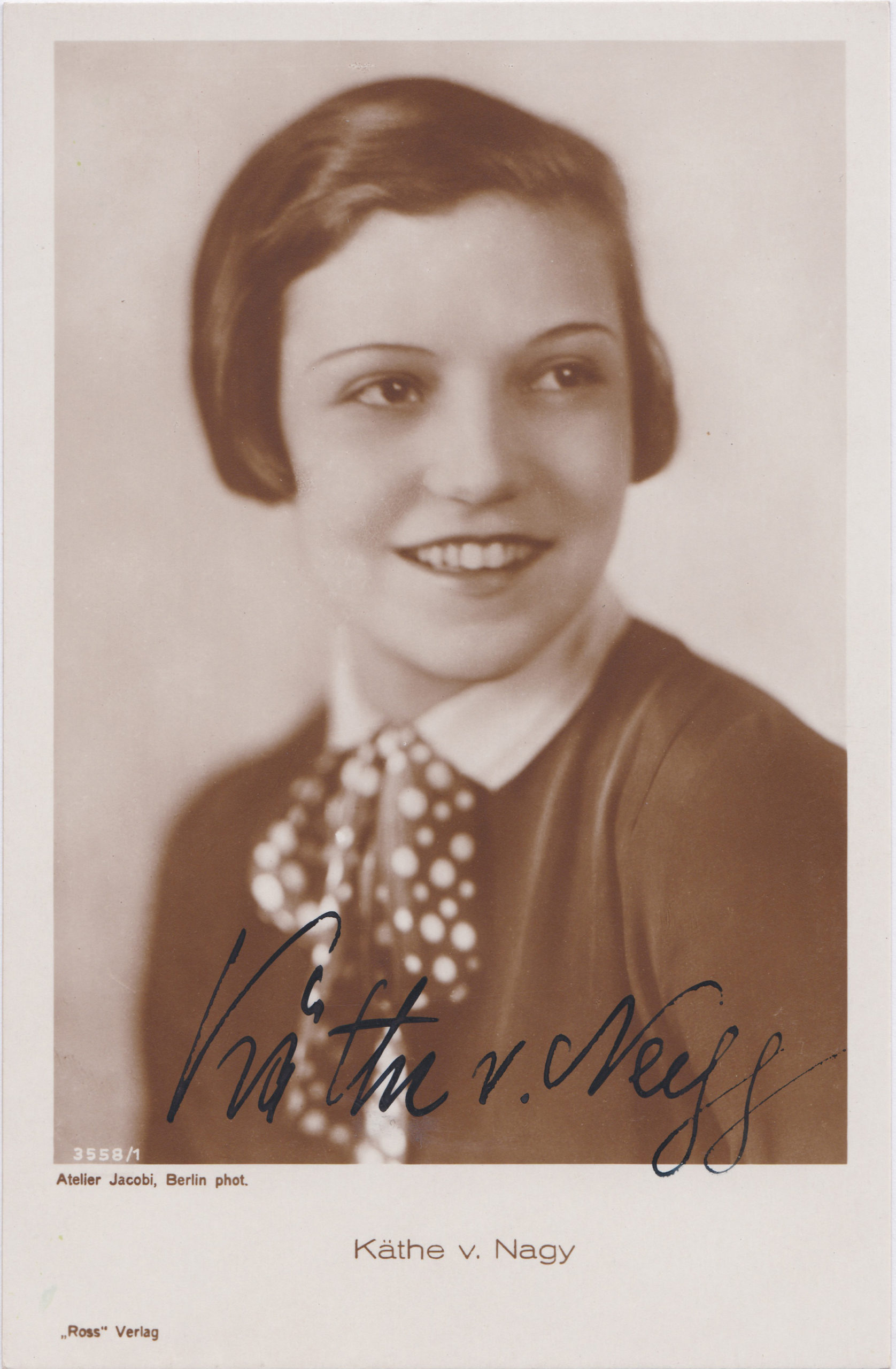 Käthe von Nagy, Tochter eines Bankdirektors, hat nach dem Gymnasium kurze Zeit eine Klosterschule (Sancta Christiana in Frohsdorf bei Wien) und dann ein weiteres Internat in Siebenbürgen besucht. Sie wollte zunächst Schriftstellerin werden und zog darum – unüblich damals für eine junge Frau – allein nach Budapest, wo sie in einer Zeitschrift einige Novellen veröffentlichen konnte und die Schauspielschule von Béla Gáal besuchte. Der Vater ließ sie zurückholen und gab ihr eine Anstellung in einem seiner Büros. Schließlich konnte sie ihren Berufswunsch jedoch durchsetzen und ging nach Berlin, wo sie als Korrespondentin für die ungarische Zeitung Pesti Hírlap arbeitete. Nach zahlreichen vergeblichen Bewerbungen erhielt sie 1927 bei der Sternheim-Film GmbH ein erstes Filmengagement, eine Nebenrolle Constantin J. Davids Lustspiel Männer vor der Ehe, in dem auch Grethe Weiser ihr Filmdebüt gab. Die erste Hauptrolle spielte Käthe von Nagy bereits 1927/28 in der von Seymour Nebenzahl und Joe May produzierten Komödie Die Durchgängerin. Weitere Hauptrollen folgten in den Filmen Mascottchen (1929) und Ihre Majestät die Liebe (1930). 1930 trat sie in Robert Wienes erstem Tonfilm, dem Jekyll-and-Hyde-Drama Der Andere als resolute Halbweltdame mit psychotherapeutischen Fähigkeiten auf.